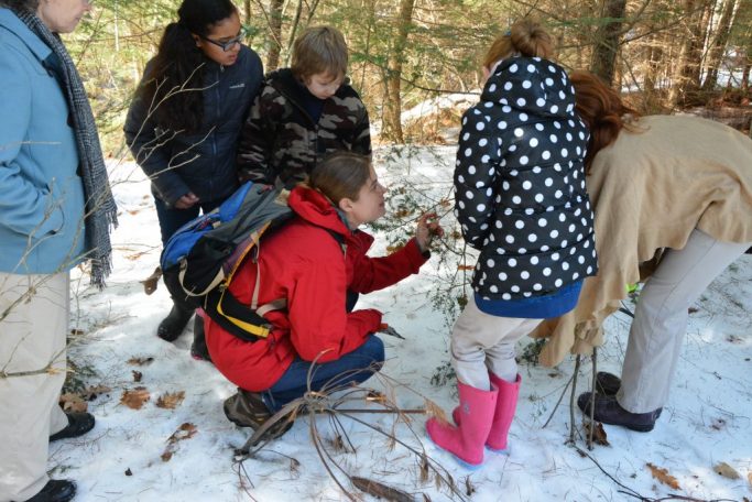 Estabrook students are very excited these days! We have been studying in science about the Snowshoe Hare and other amazing creatures that are living right here on our school campus. Ms. Heidi Holmann, a biologist from the State of New Hampshire Department of Wildlife came and shared more information with us about these animals. We learned many astonishing facts and discovered clues about them that we had walked right by before! Ms. Holmann even lent us a game camera which now is placed near one of our feeding stations.